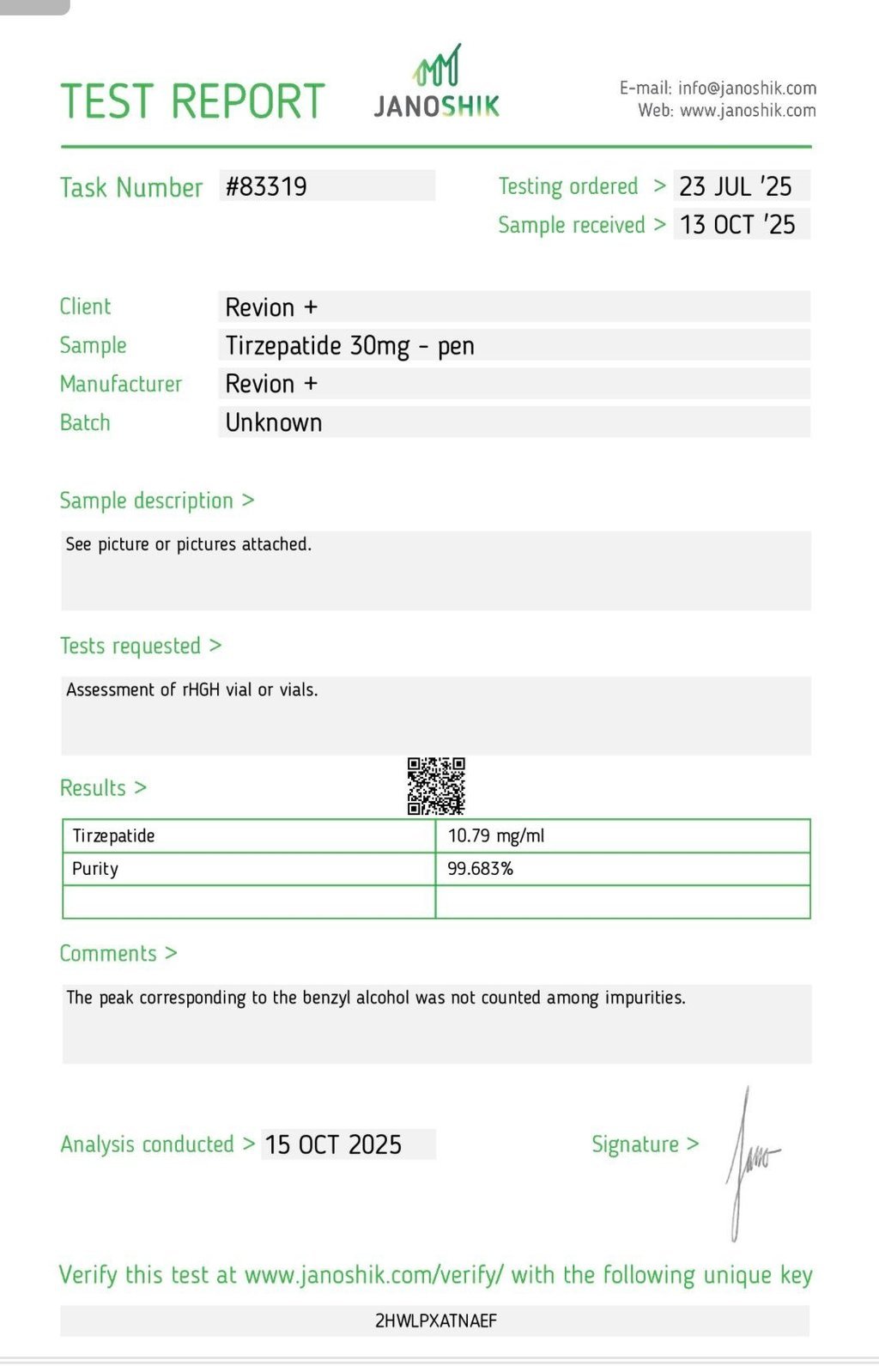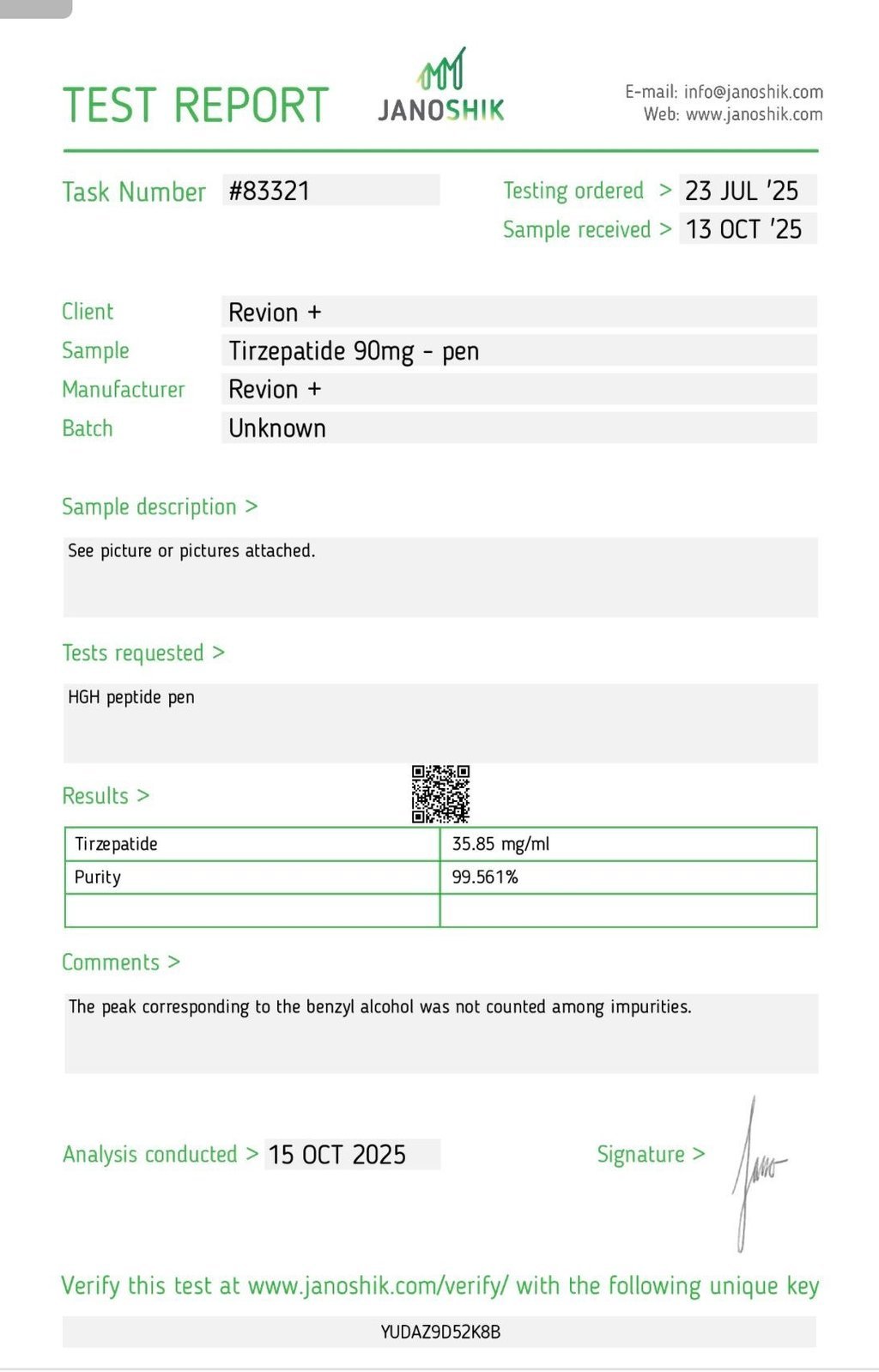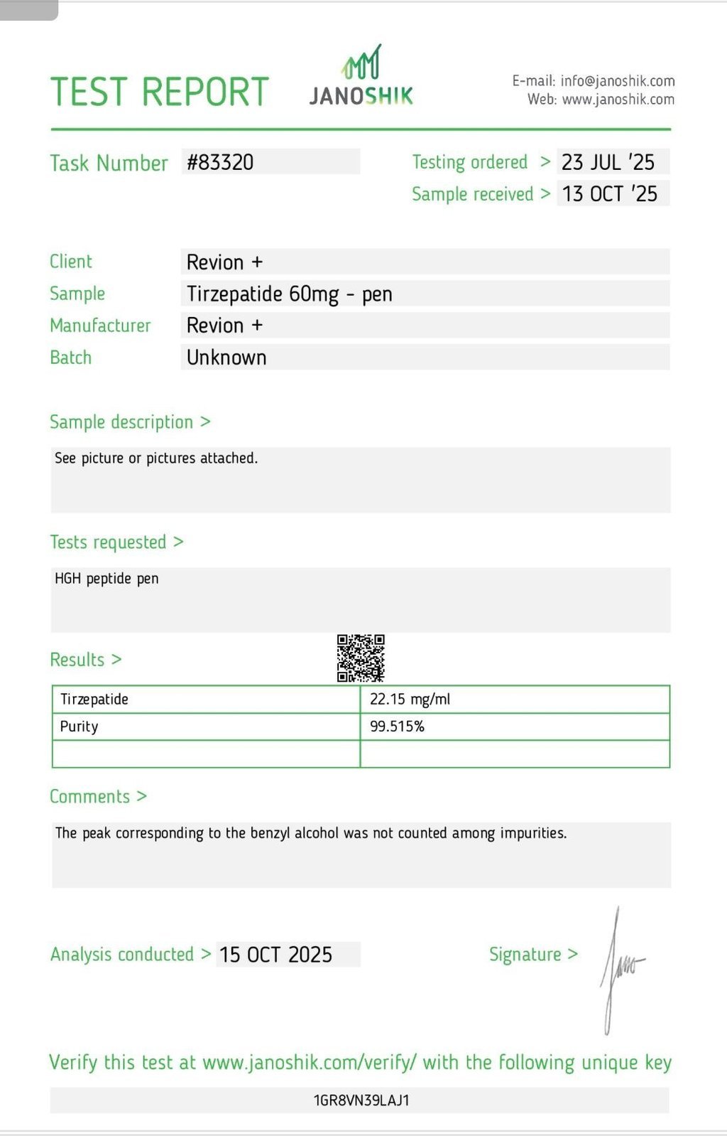 Each product batch is supported by laboratory testing. Customers can scan the QR code on the product box to access certifications and purity data, ensuring full transparency and trust.